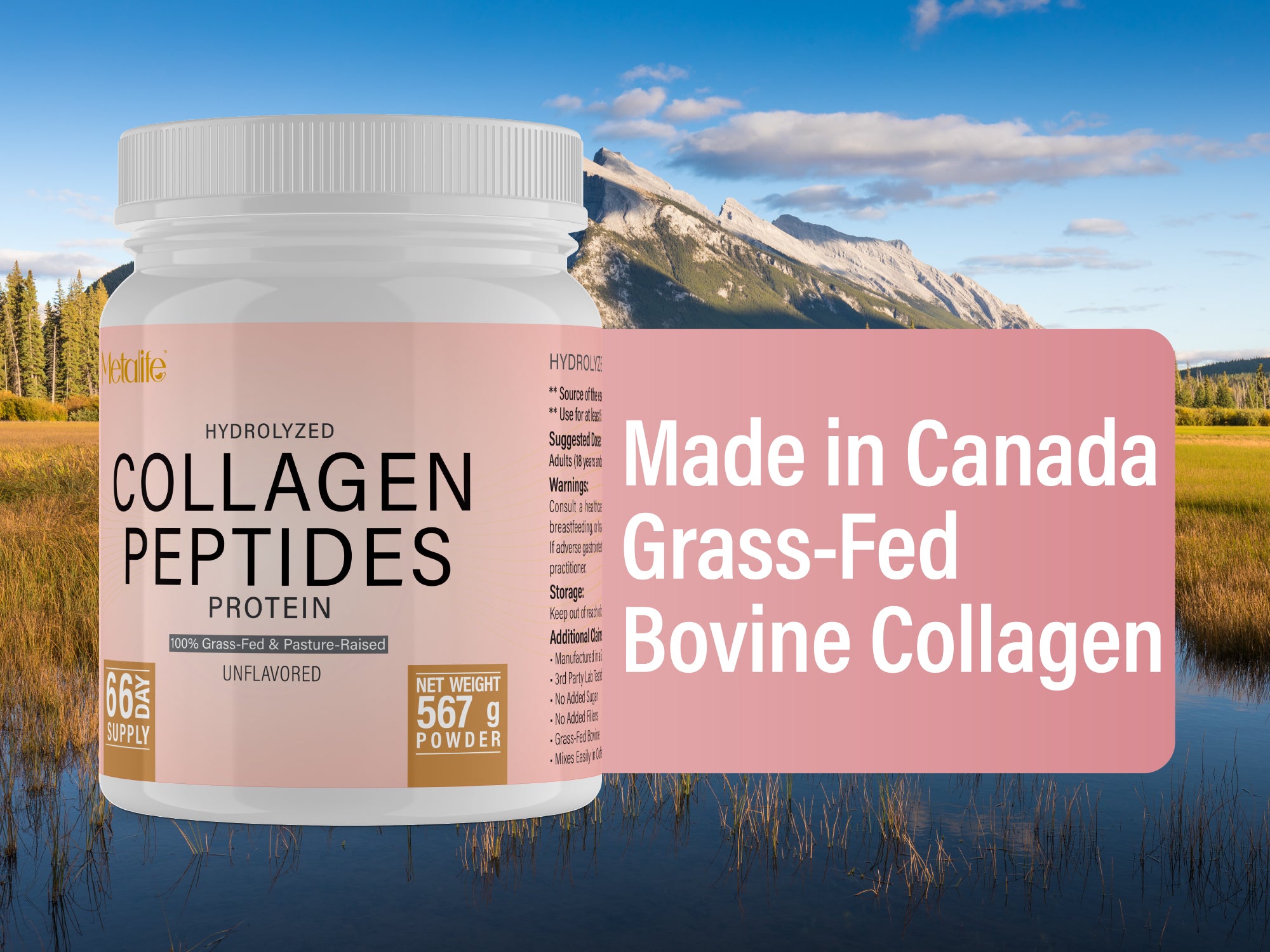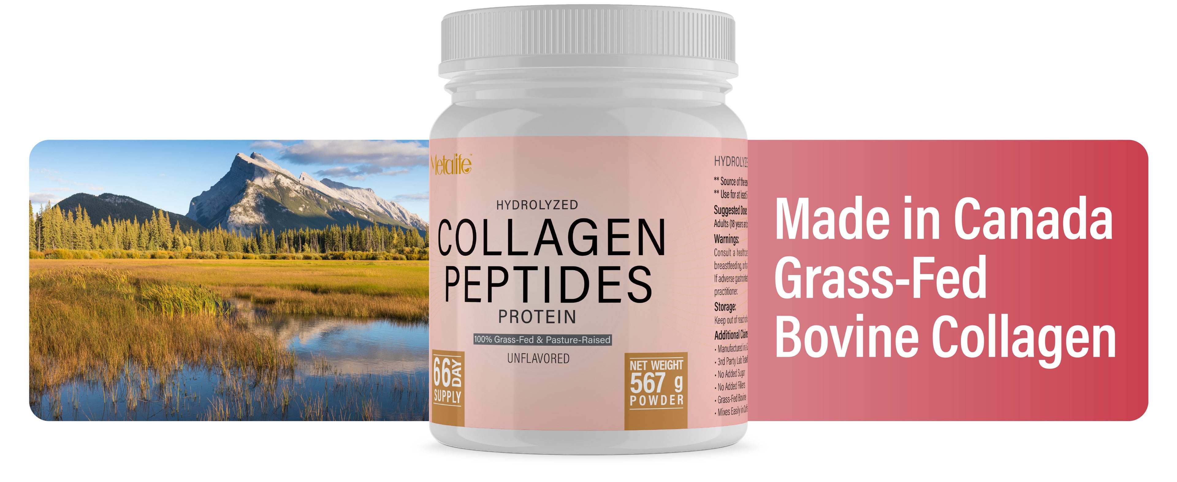 METALIFE Collagen Powder 20 Oz, 66 Servings, Hydrolyzed Collagen Peptides, Grass-Fed Bovine, Unflavored, Made in Canada, Supports Joints, Skin, Hair & Nails, Protein Supplement for Women & Men