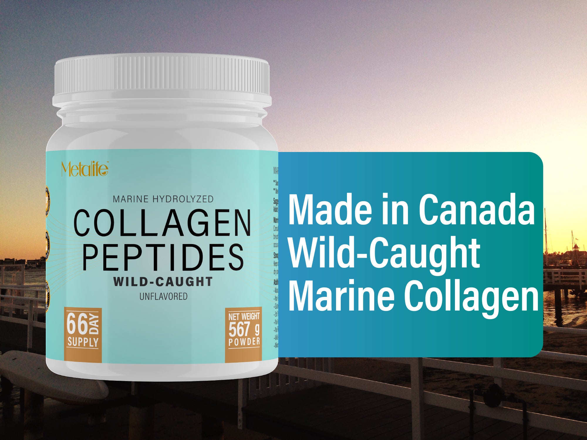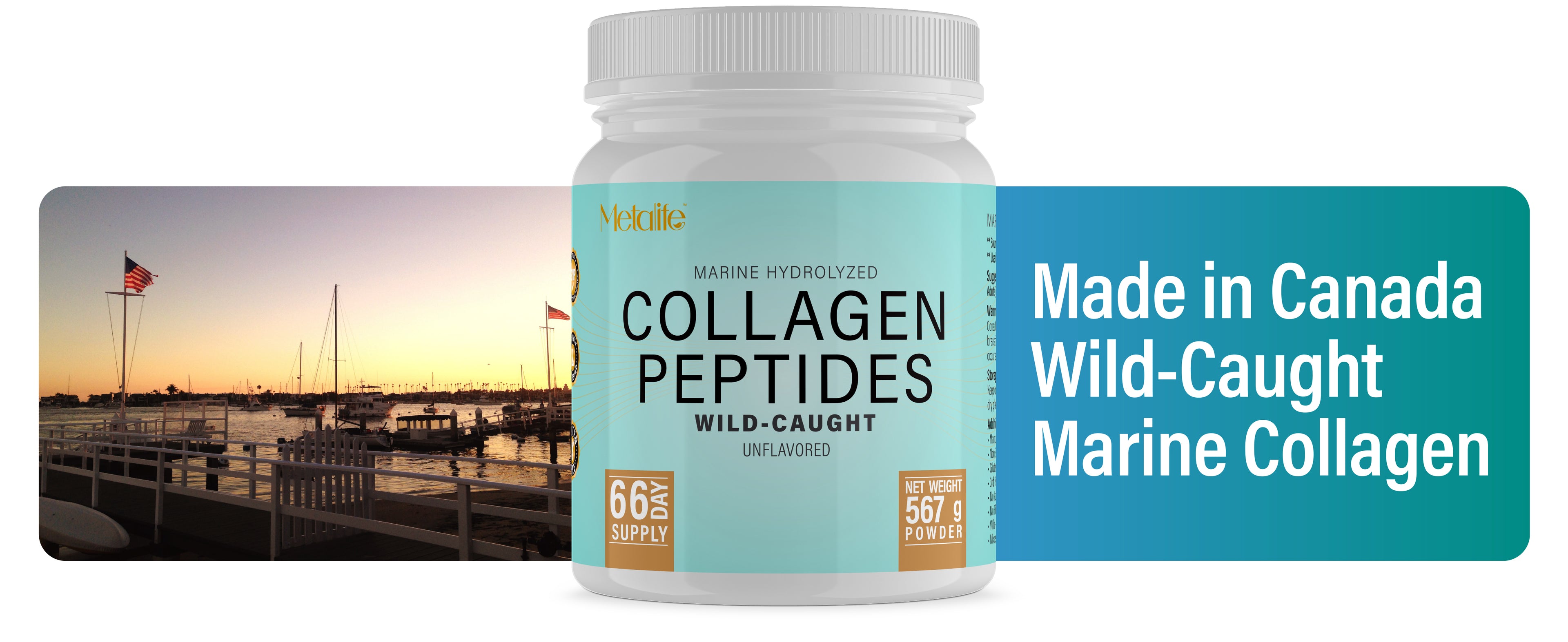 METALIFE Marine Collagen Powder 20Oz, 66 Servings, Hydrolyzed Collagen Peptides, Wild-Caught Fish, Unflavored, Made in Canada, Supports Joints, Skin, Hair & Nails, Premium Protein Supplement