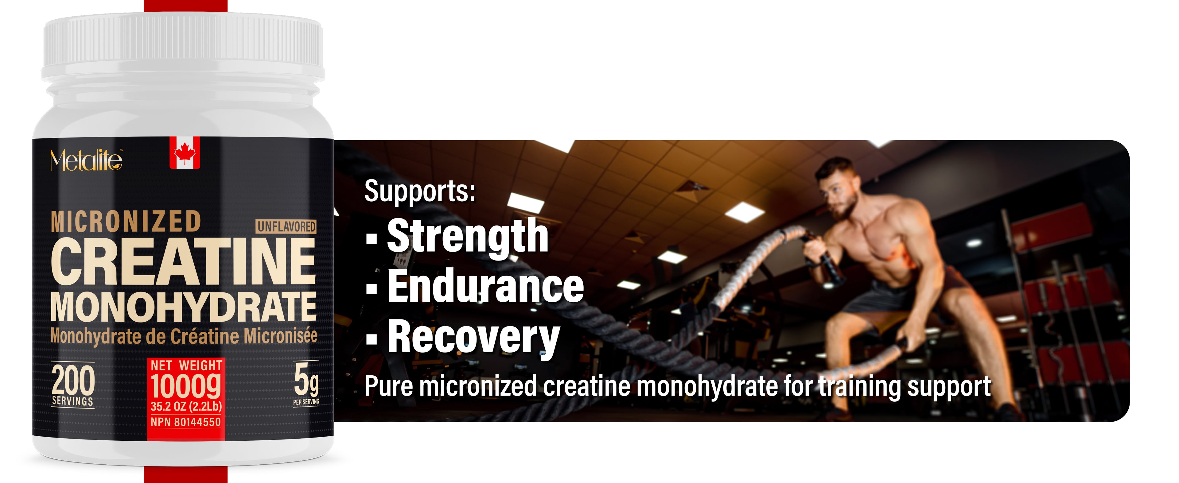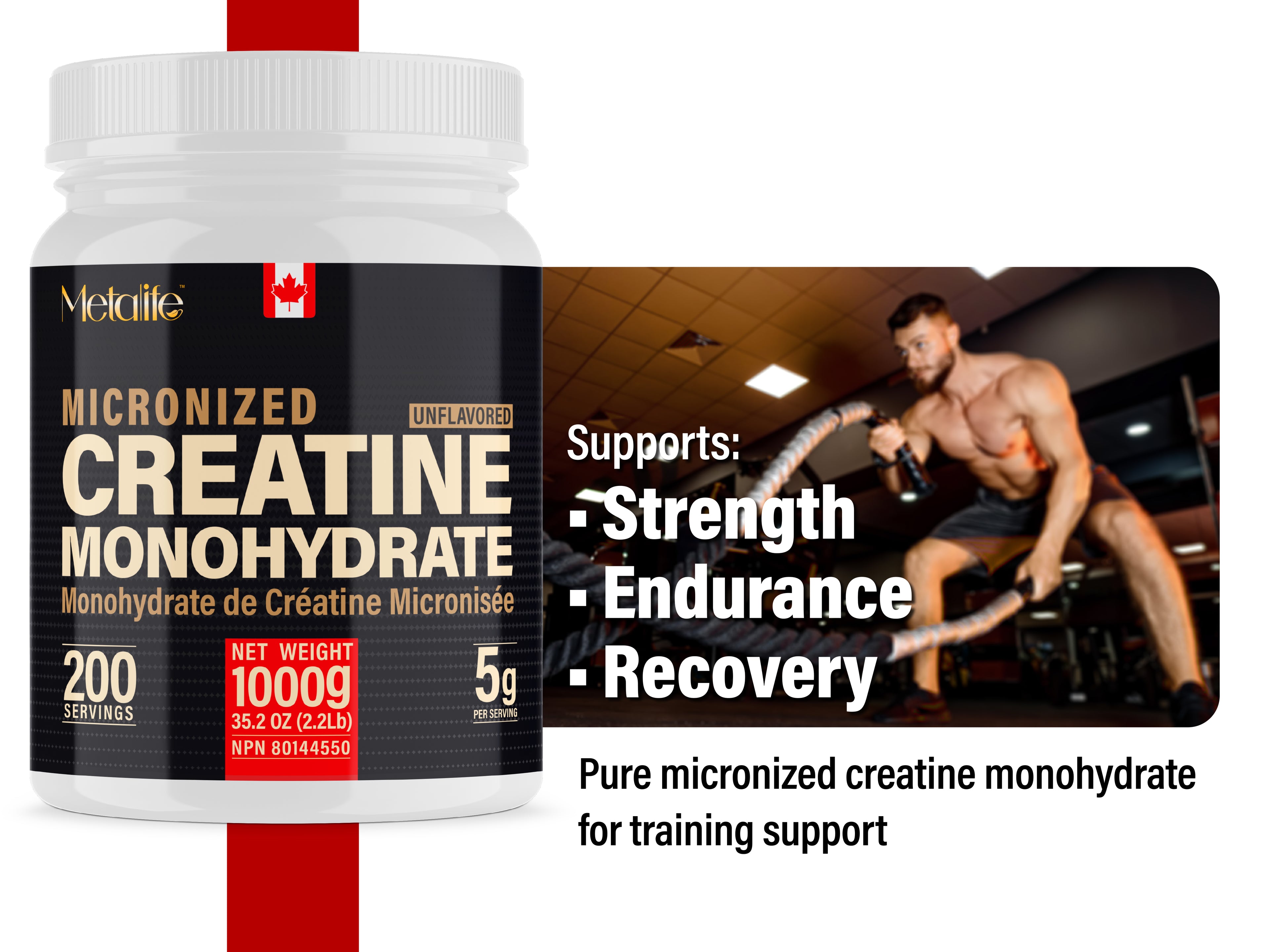METALIFE 100% Pure Creatine Monohydrate Powder, Canada-Made, 1000 g (200 Servings) Micronized Powder, Muscle Growth, Unflavored, Ideal for Athletes & Fitness Enthusiasts, Third party lab tested, Vegan