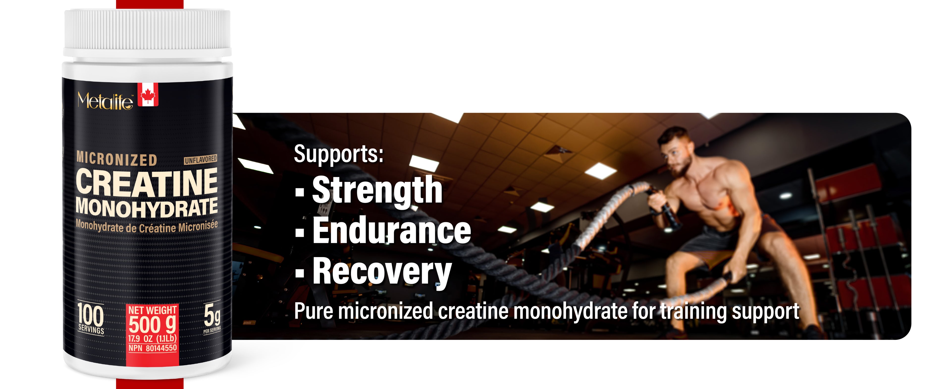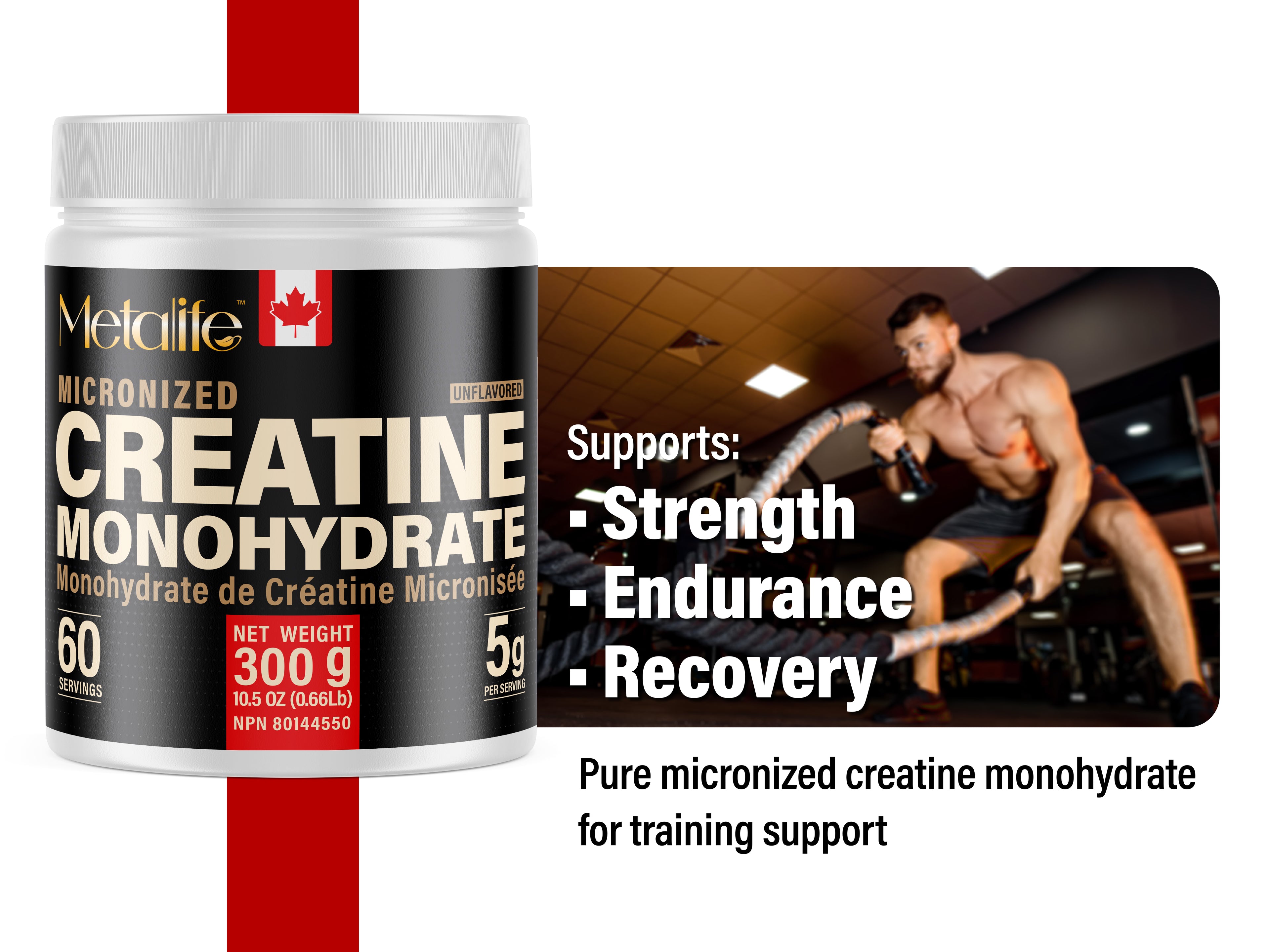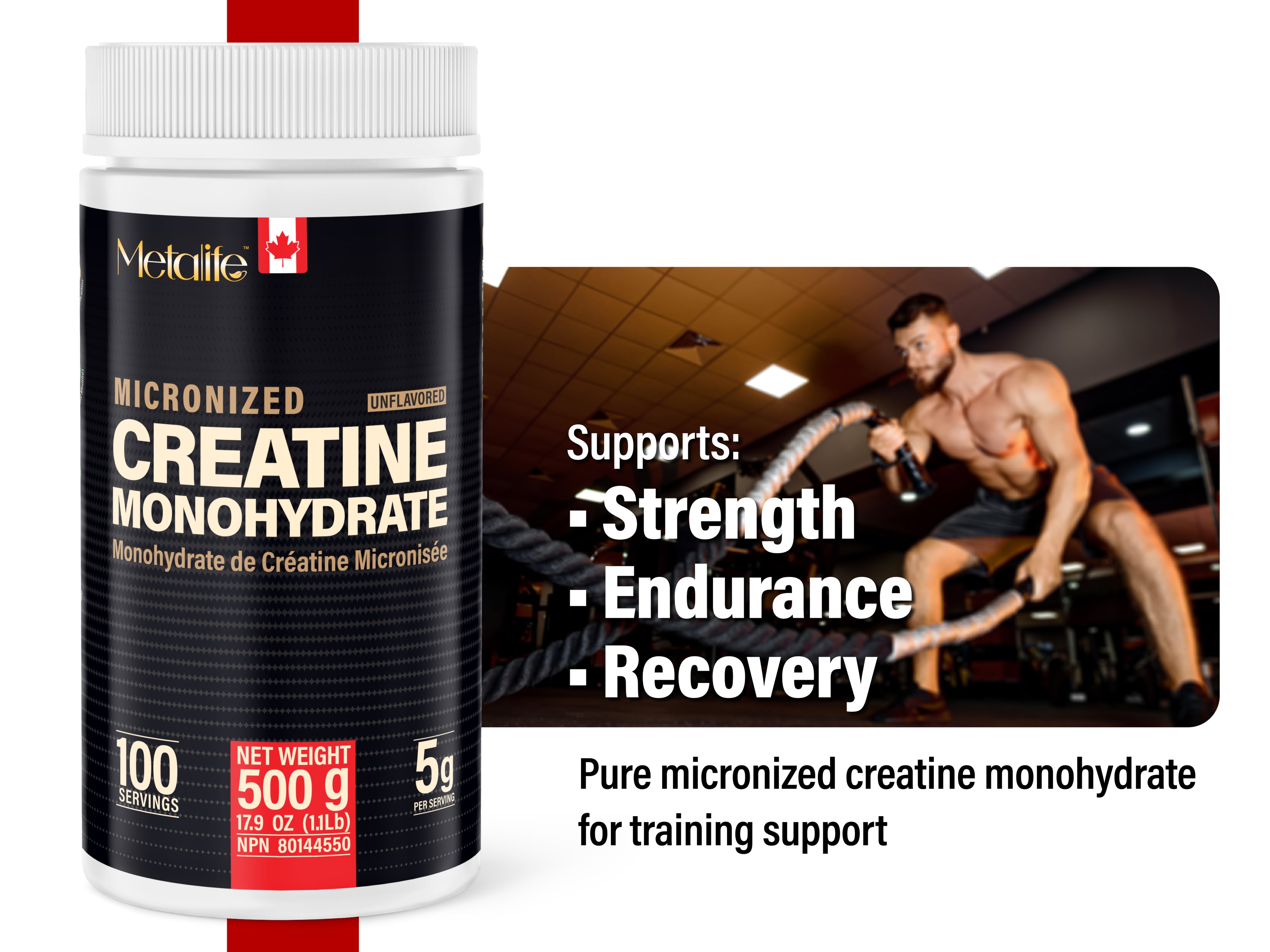 METALIFE 100% Pure Creatine Monohydrate Powder, Canada-Made, 500 g (100 Servings) Micronized Powder, Muscle Growth, Unflavored, Ideal for Athletes & Fitness Enthusiasts, Third party lab tested, Vegan