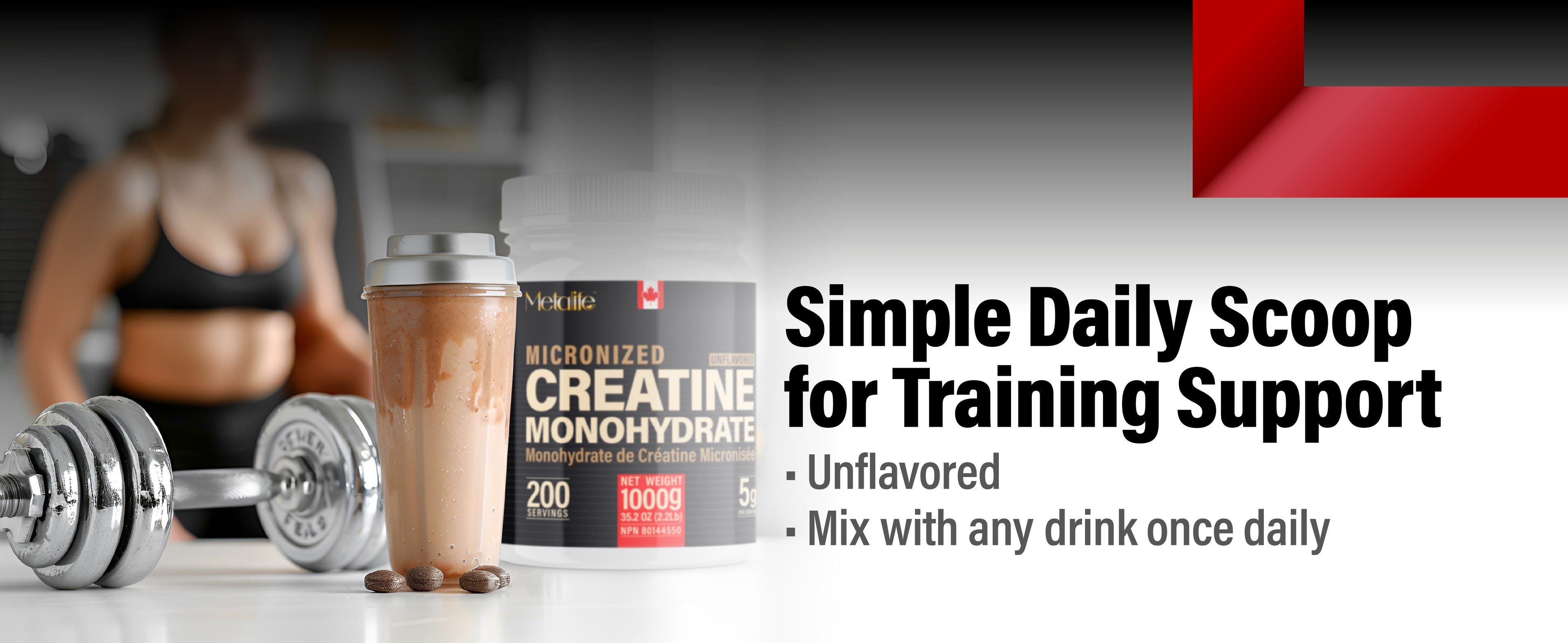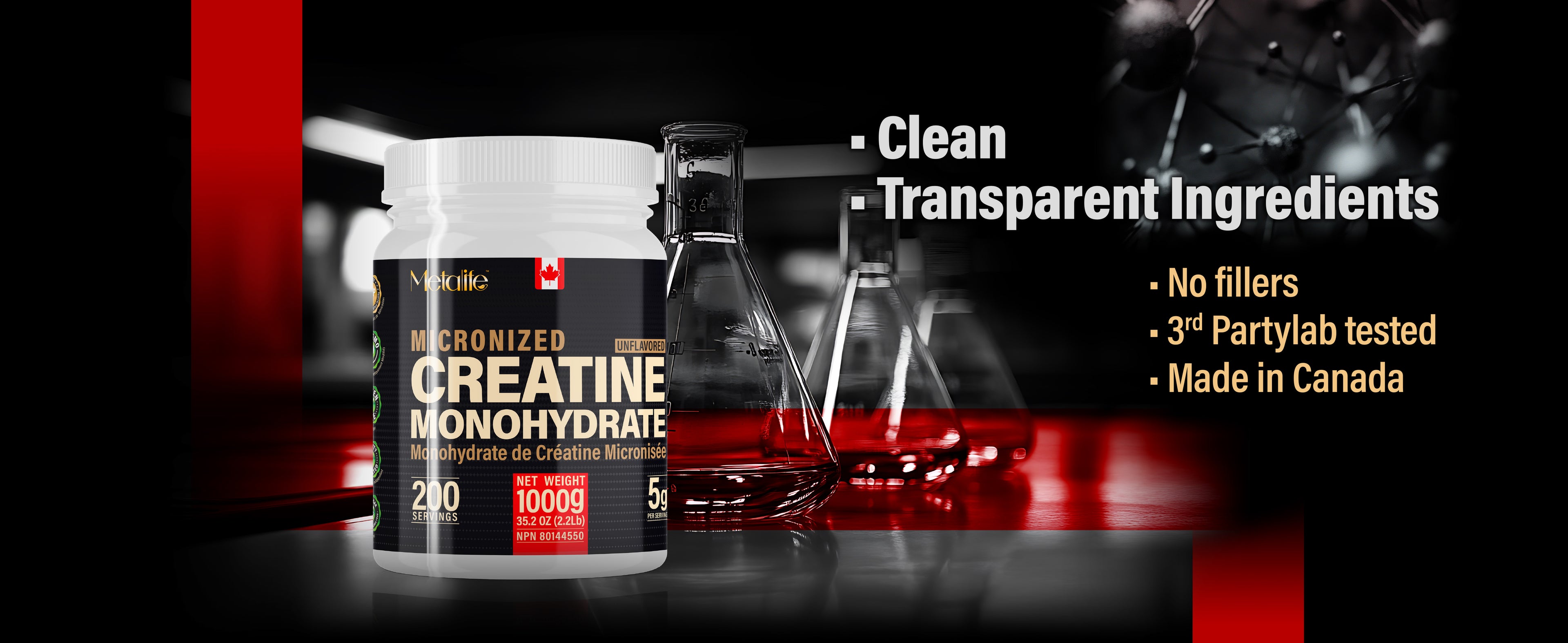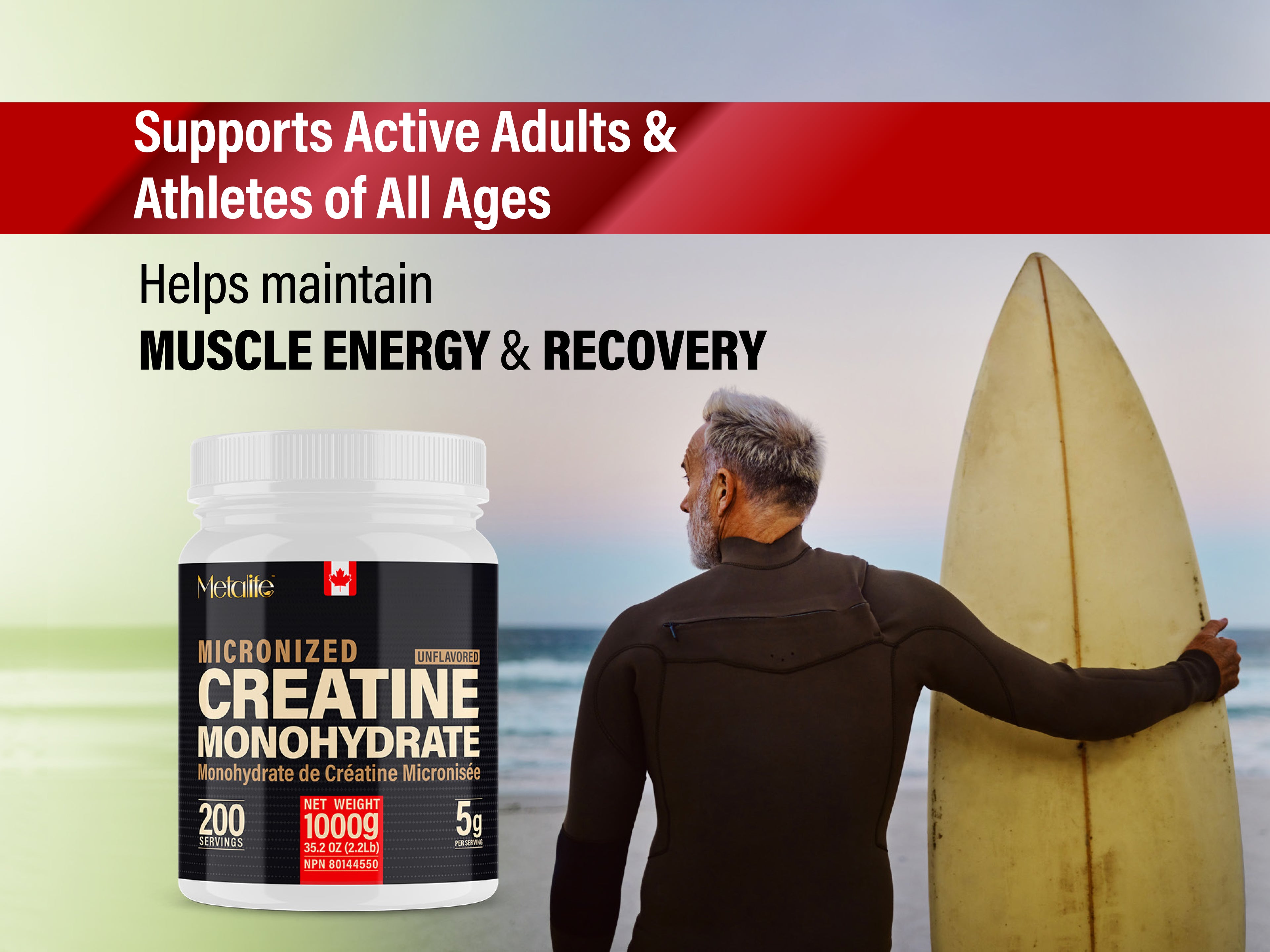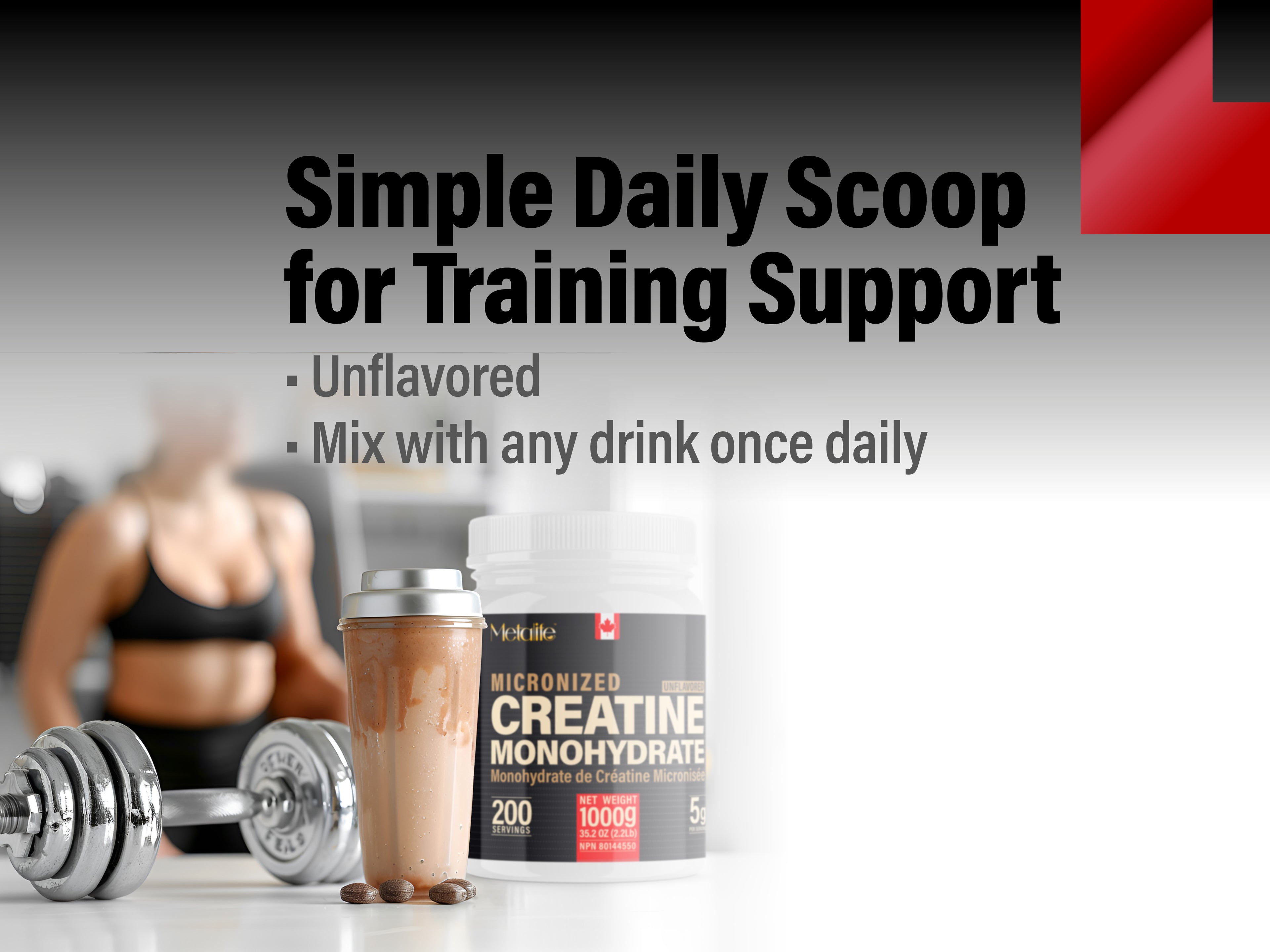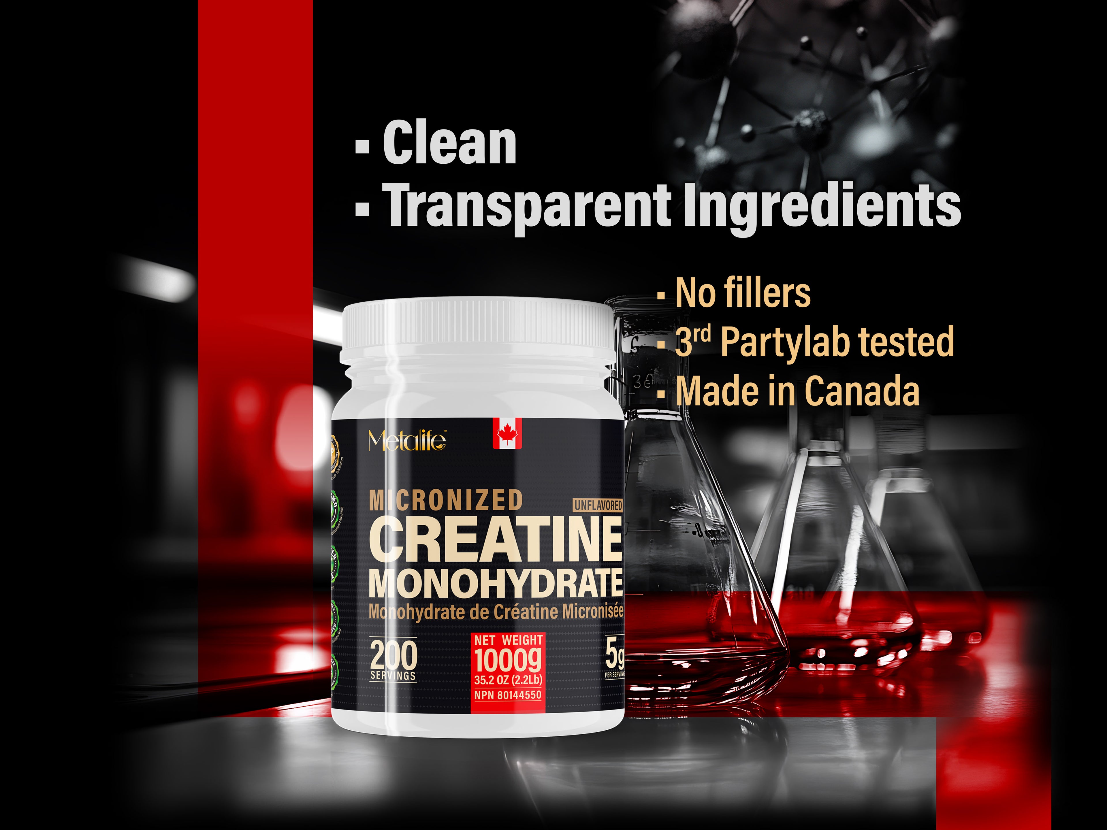 METALIFE 100% Pure Creatine Monohydrate Powder, Canada-Made, 1000 g (200 Servings) Micronized Powder, Muscle Growth, Unflavored, Ideal for Athletes & Fitness Enthusiasts, Third party lab tested, Vegan